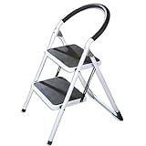 Overall Height: 32"/ No slip or mar plastic tips/ Wide metal step with PP mat and armrest for sure-footed safety/ Constructed for durability and strength/