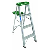 Household and general purpose stepladder. Has pail shelf with tool holders. Features braced bottom step, slip resistant 3" wide steps, red vinyl shoes, and green top. UL listed and labeled. Type II household duty rating 225 lb. Specifications:Top: 4 5 8"